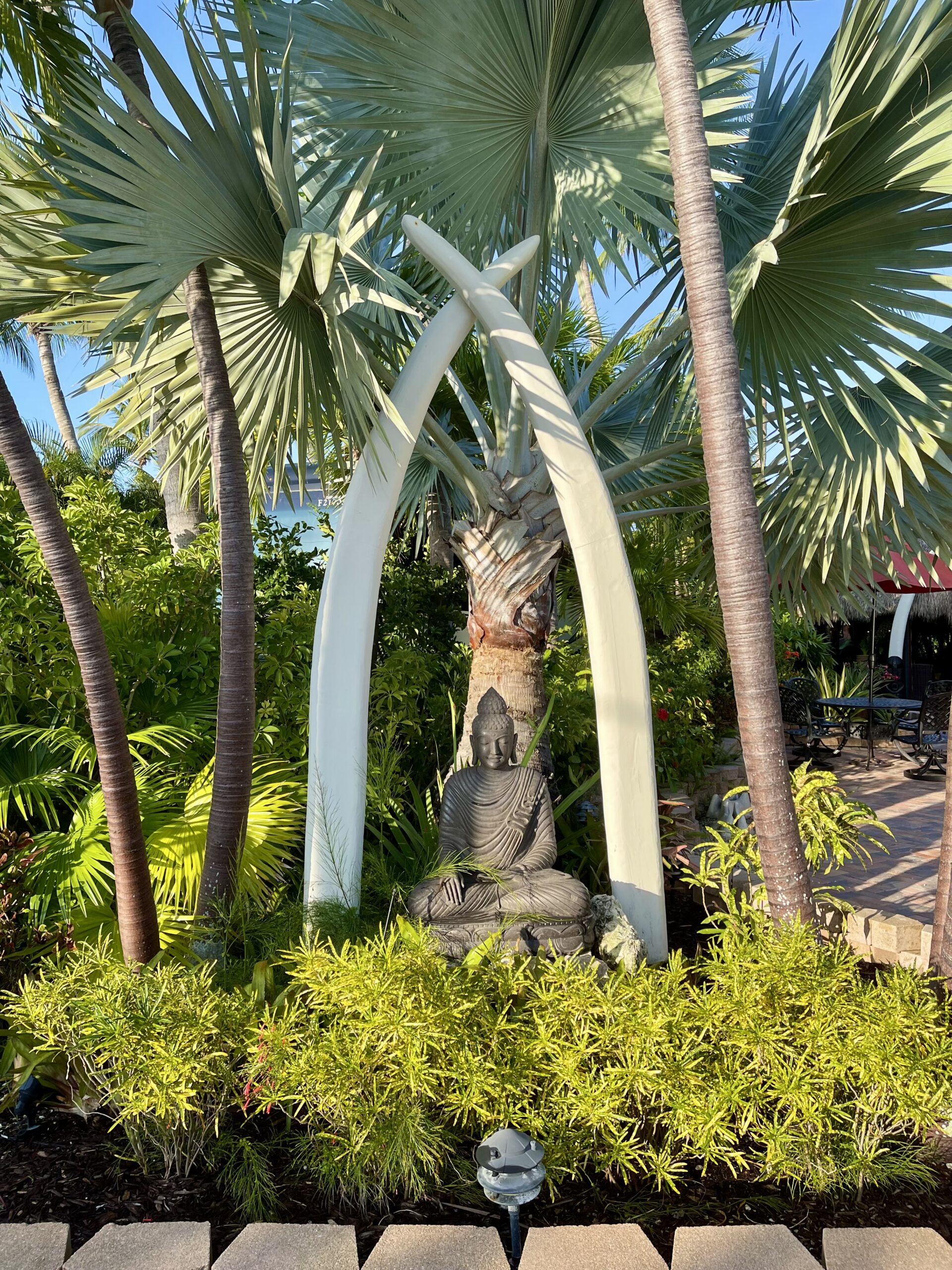 Lot entrance, Path, Trees, art, etc. highlightedTiki Living